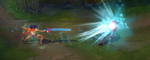 新增效果:蕾欧娜的剑将会附加“炽烈”效果,使其接下来的3/4/5次普通攻击获得增强,范围提高100,并会造成 30/40/50(+ 15% AP)的额外魔法伤害。