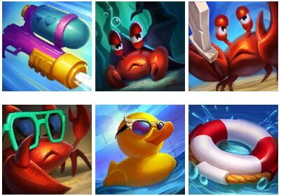 了泳池派对主题守卫皮肤,一只螃蟹站在沙堡上。
