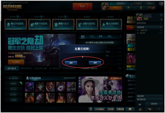 如下图:在您匹配到队友时,您必须要选择“接受”或者“拒绝”,希望大家都是准备好了才开始进行匹配,一旦匹配到就“接受”积极进行游戏,发扬团队凝聚力,尊重竞技精神。