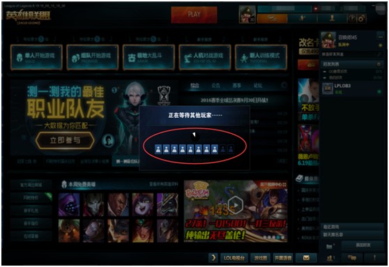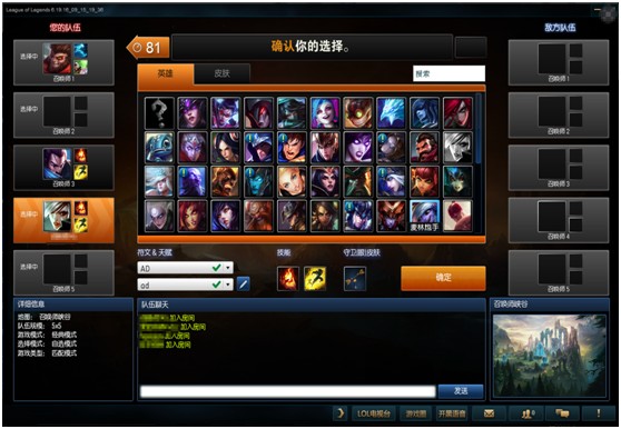 在大家都接受后,进入传统的英雄选择界面,如下图: