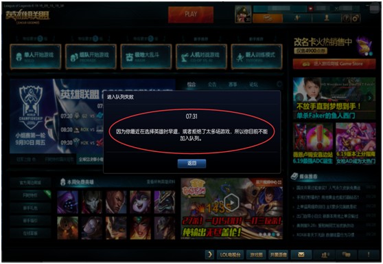 再次建议大家在准备好后再开始进行匹配,如果你“拒绝”多次,或者在选择英雄时强退,将受到系统延时匹配处罚;