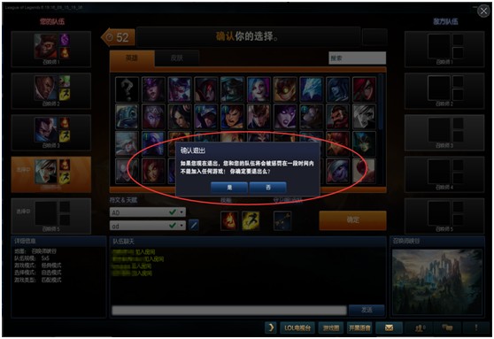 当然,您在英雄选择界面也有办法退出游戏,但是我们强烈建议您在准备好后才开始匹配,没有准备好建议大家不要开启匹配,多次强退会受到系统处罚。