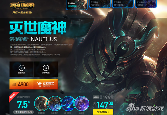 LOL英雄诺提勒斯灭世神魔皮肤上线,那么这款特别炫酷的皮肤卖多少钱呢?又去哪里购买呢?我们一起来看看诺提勒斯灭世神魔皮肤的购买地址。